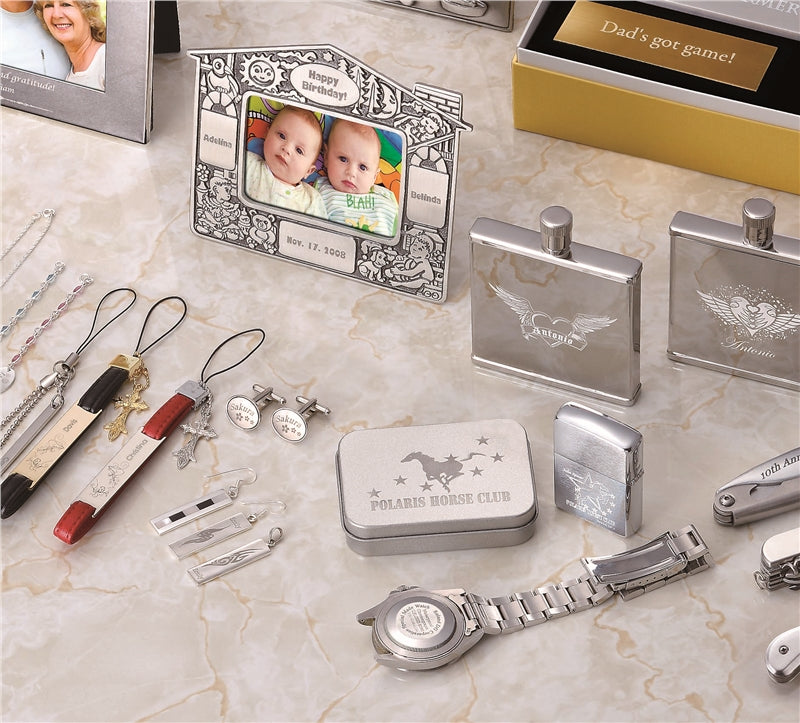 MPX-90S 個人化選項包括筆和名片夾、智慧型裝置、首飾、太陽眼鏡、手錶、獎牌、狗牌 ....以及更多!