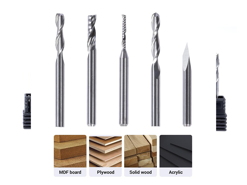 Snapmaker CNC雕刻刀頭5入套裝中,鑽頭柄直徑為3.175mm,採用UF20鎢鋼合金,硬度高、耐磨、使用壽命長,Snapmaker Original和Snapmaker 2.0系列三合一3D列印機皆適用。