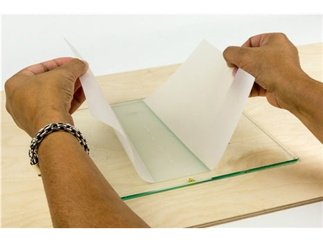 平台貼紙則是極力推薦於使用CPE +和PC材料。這些材料需要110ºC的加熱版溫度,但是儘管在110ºC的溫度架還是會有翹曲的可能,使用貼紙可以大大提升物件與平台的貼合度。