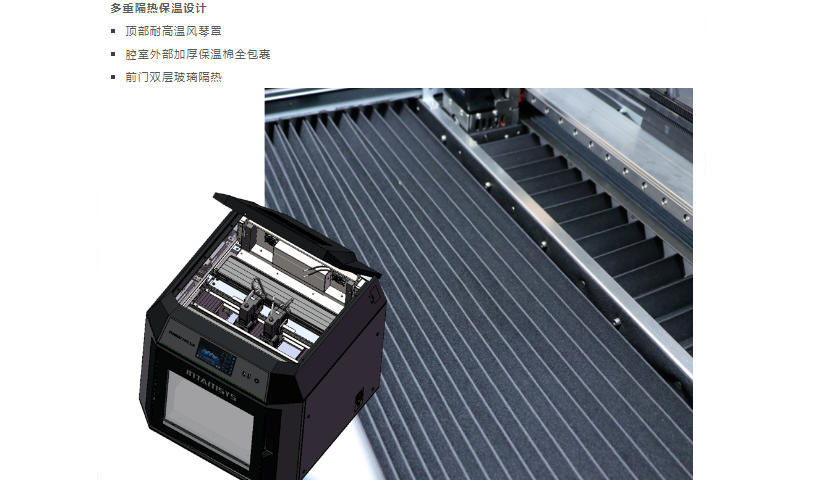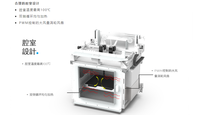 Print size is a crucial factor for users when selecting equipment. Currently, most desktop 3D printers still face challenges in printing large and full-size objects, frequently experiencing warping, delamination, and cracking, leading to printing failures. This is because the filament is in a high-temperature molten state when extruded from the printhead. If the surrounding temperature drops too quickly during the printing process, internal stress can develop within the material.