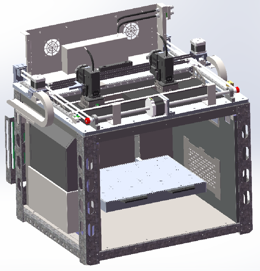 The all-steel metal frame reduces vibration during printing, and combined with a high-precision motion control system, it enables long-term continuous and stable printing. The independent sheet metal frame further reduces printing vibration. The XYZ axis frame and chamber heating are designed independently to prevent frame deformation caused by high temperatures and reduce mechanical thermal expansion. The maximum printhead movement speed is 500mm/s, and the maximum printing speed is 120mm/s.