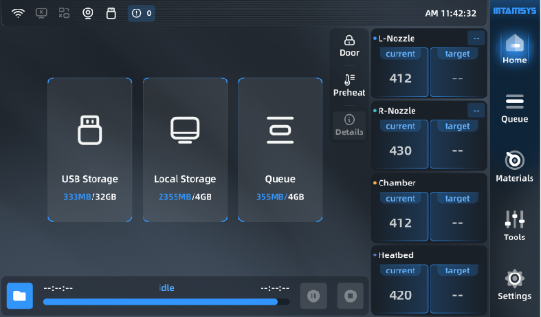 A 7-inch full-color touchscreen with a brand-new UI interface allows for quick and easy setup; printing can begin after a simple configuration. Intelligent grid multi-point automatic leveling provides real-time compensation for motion accuracy, eliminating the need for manual calibration and ensuring a fast and easy learning experience. It features automated task queue management and provides rich API interfaces for seamless integration with MES systems, meeting customers' Industry 4.0 requirements.